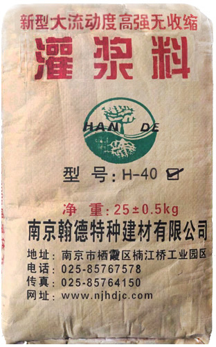 南京翰德特種建材有限公司是一家集開發、生產、銷售、管理于一體的現代化企業。我公司專業生產高強無收縮灌漿料,現擁有客運專線專用型、H-40、H-60、CGM、特種灌漿料等五大系列。 我公司成立以來,通過技術創新、完善企業經營管理,客戶已遍及江蘇、山東、河南、浙江、福建等省市,目前公司產品年生產能力30000。已有多項規格品種產品分別獲國家專利、省市名牌,并被列為國家星火計劃、國家火炬計劃,產品產銷量居全國同行業前列,已形成以南京、阜陽兩大生產基地為主體,以南京翰德特種建材有限公司為前沿,兩地互為依托、同步推進的產業發展格局。